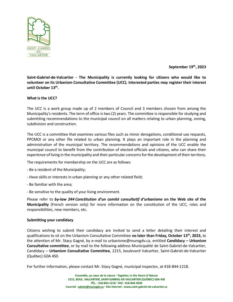 » Candidacies - Urbanism Consultative Committee (UCC)